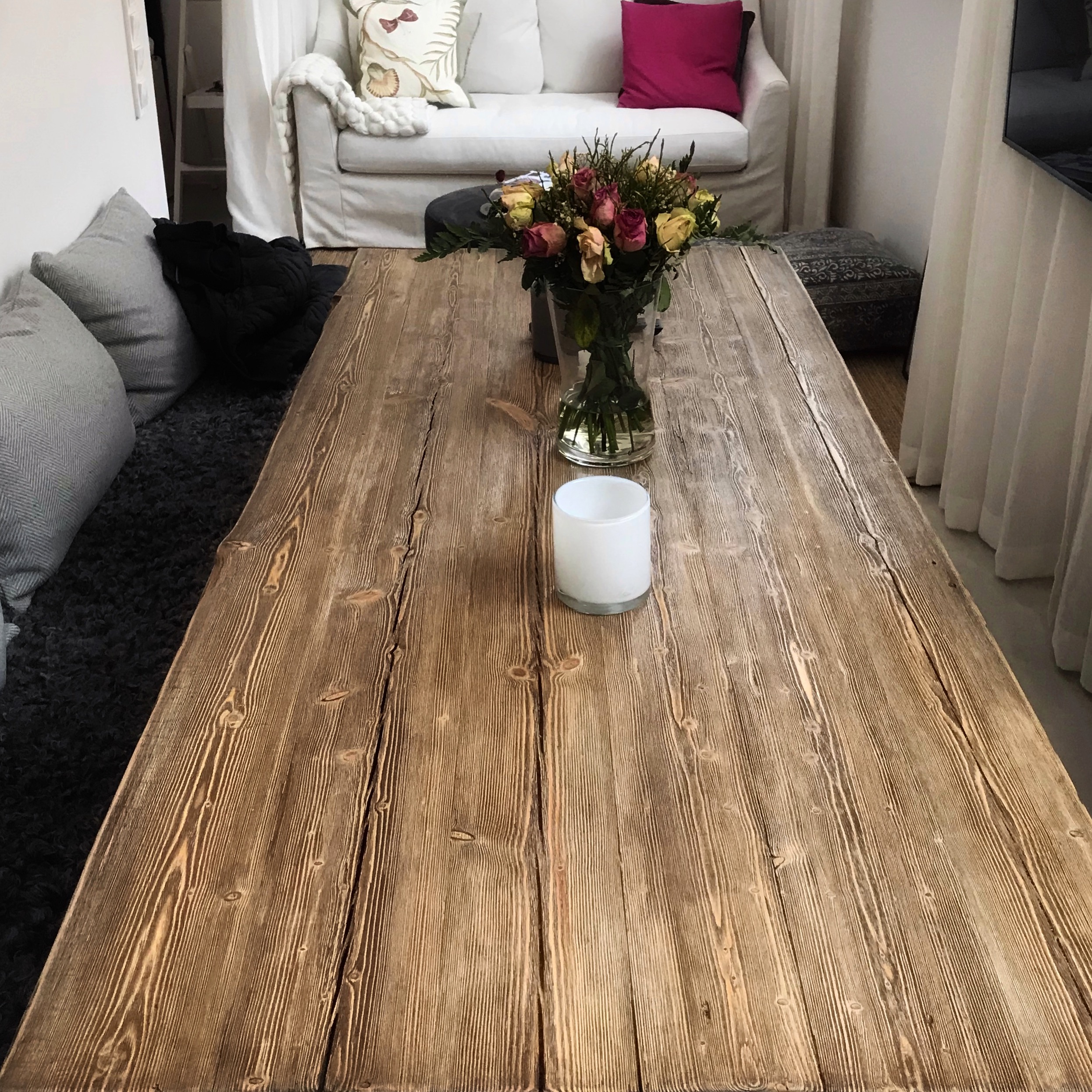 Handgjort bord av gammalt virke